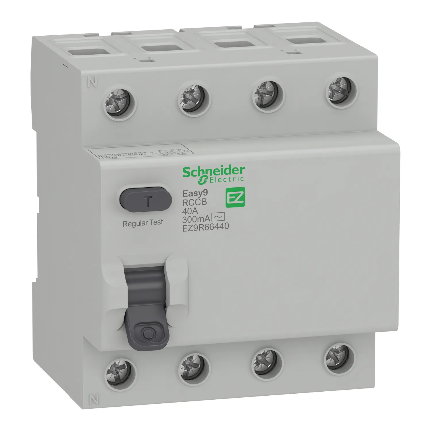 Schneider Electric EZ9R66440 Easy9 RCCB | 4 Poles 40A Rated Current | 400V AC | Easy9 Series Budget-Friendly MCB | Cost-Effective Circuit Protection | Residential Commercial Applications | DIN Rail Mount 18mm Pitch | BS EN 60898-1 IEC 60947-2 Standards | Conventional Busbar System | Tool-Free Installation | Compact Design Space-Saving | Tunnel Terminal Connections | IP20 Protection Degree | Short Circuit Overload Protection | Modern Consumer Unit Compatible | Easy Installation Maintenance | Earth Leakage Protection | Residual Current Detection | Personal Safety Device | Electric Shock Prevention | Fire Prevention | Ground Fault Protection
